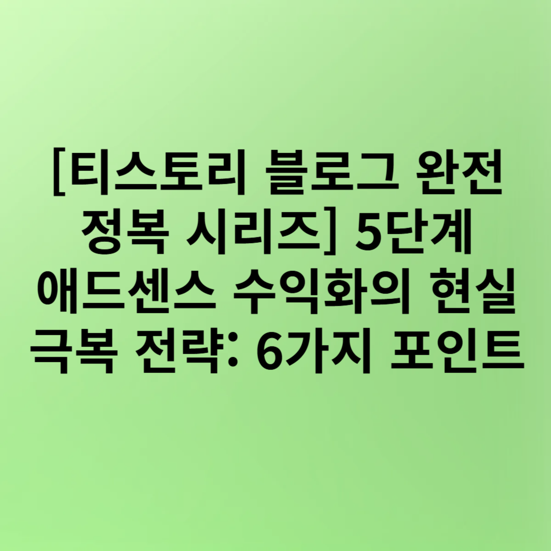 📘 [티스토리 블로그 완전 정복 시리즈] 5단계 애드센스 수익화의 현실과 극복 전략: 초보 블로거가 반드시 알아야 할 6가지 핵심 포인트